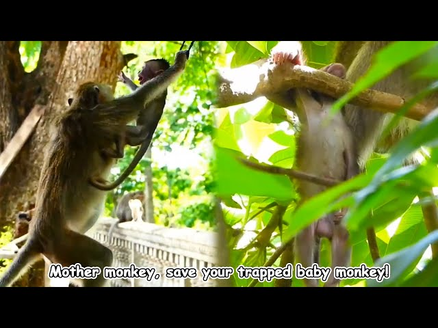Baby Monkey Trapped, Mother Monkey Rushed to Save!