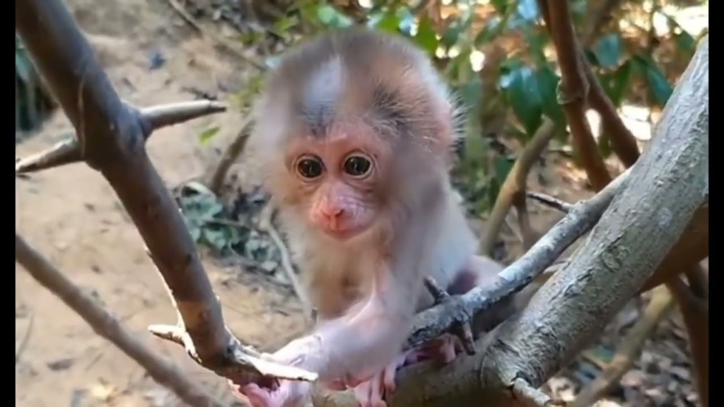 Baby monkey try to get down—a simple moment that suddenly turned into a tense and emotional struggle. Perched high above the ground, the tiny monkey looked unsure, its small hands gripping tightly as fear began to take over.