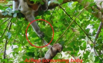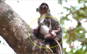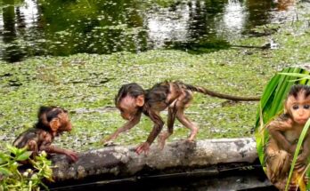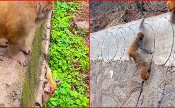 A small cry breaks the quiet afternoon. Tiny hands reach upward. The baby monkey can’t jump up high wall on her own, and the struggle begins. The frightened little primate …