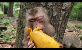 The little monkey waits for the sound of mom calling. The little monkey is so cute, sleeping Read More