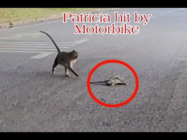 God save baby Patricia got accident with Motorbike during across the road. The fragile baby monkey Patricia had just begun crossing the road when the unexpected motorbike accident happened in a terrifying instant.