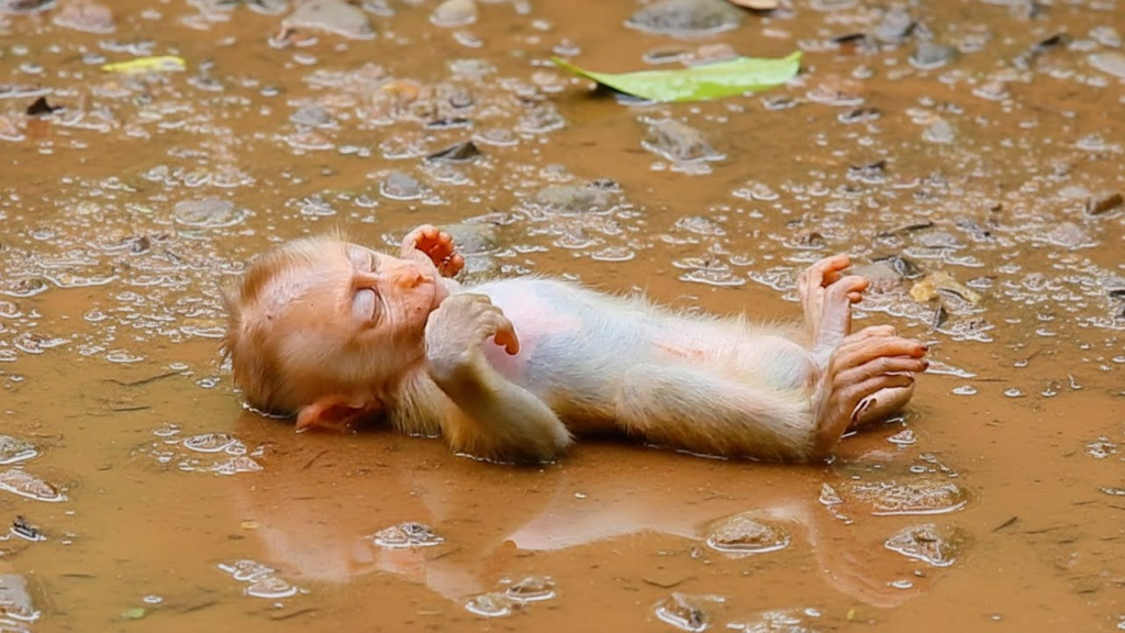 A quiet, emotional moment steals the heart as the baby monkey sleeps soundly alone on the ground, unaware that his mother is slowly making her way back to comfort him. In the stillness of the wild, this gentle scene feels both fragile and unforgettable.