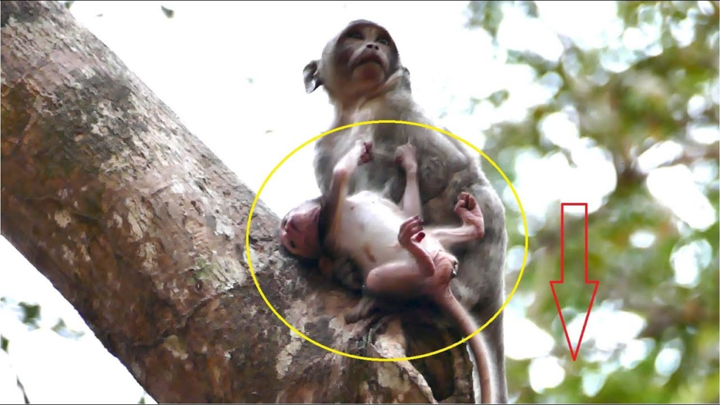 The tiny baby monkey Barbie had been sitting quietly on a branch when the unexpected happened. A playful but reckless young monkey pulled Barbie upward, climbing rapidly into the tall tree. The fragile baby struggled to hold on as the height grew more dangerous with every second.