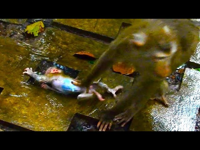 This baby monkey crying in the rain seemed to be begging for only one thing—warmth from his mother. His tiny body trembled under the heavy drops, and every weak cry sounded like a call for comfort that never came. Instead of pulling him close, the mother moved away, leaving him exposed to the cold and fear.