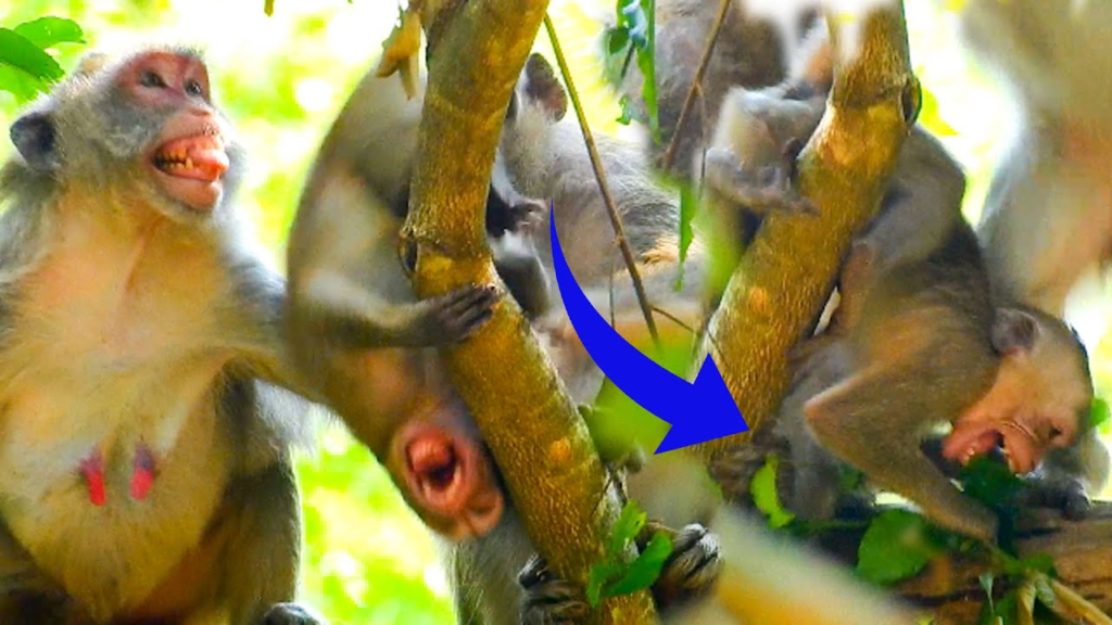 The phrase baby monkey Janna got terrified beat by mom reflects a harsh reality sometimes seen in wild animal behavior. Janna, still small and fragile, struggled to escape as she lost her grip and fell from the tree.