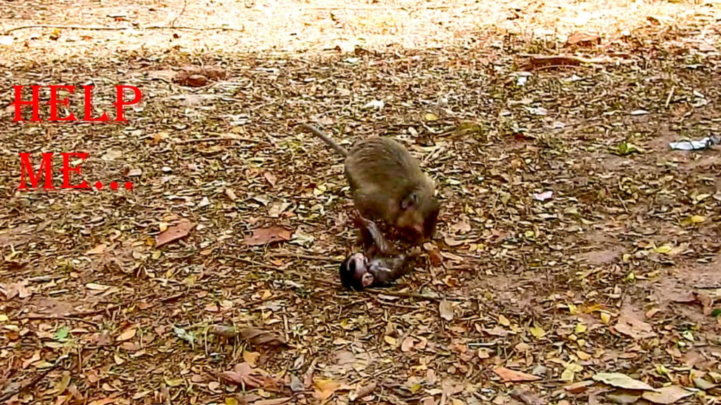 In this intense baby monkey cruelty moment, the infant tries desperately to escape. Every movement is slow, weak, uncertain. Yet instinct pushes it forward. A heartbreaking fight just to stay alive.