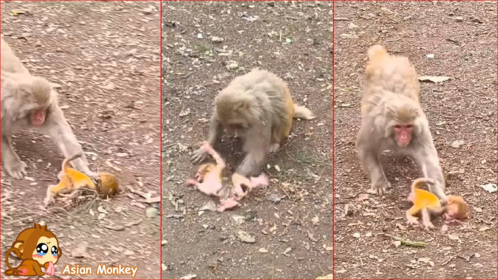 In a heartbreaking scene, she began to drag the baby monkey away, as if driven by instinct beyond understanding. The pain was silent, yet overwhelming. Every second felt heavier, every movement more difficult to watch.