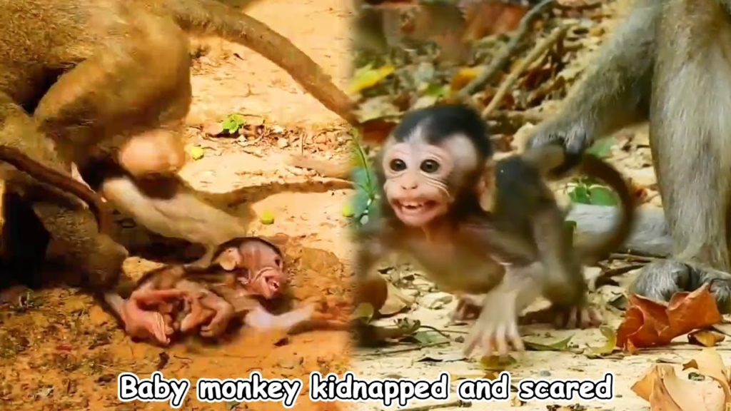 A shocking moment of panic unfolds when the male monkey snatched baby monkey straight from its mother’s arms, leaving her frozen in helpless fear.