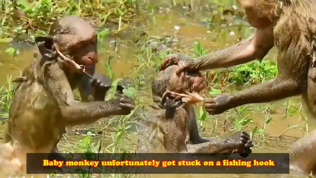 A painful cry echoed through the wild as the monkey got a fishhook stuck in her mouth, turning an ordinary moment into a heartbreaking struggle.