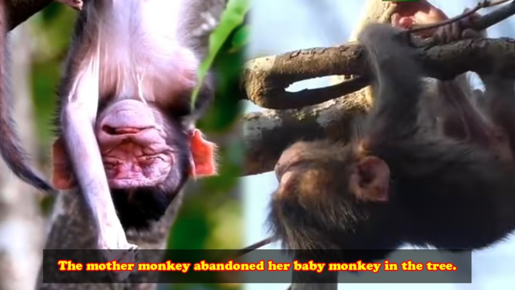 The baby monkey clung desperately to a thin branch, swaying with every gust of wind.