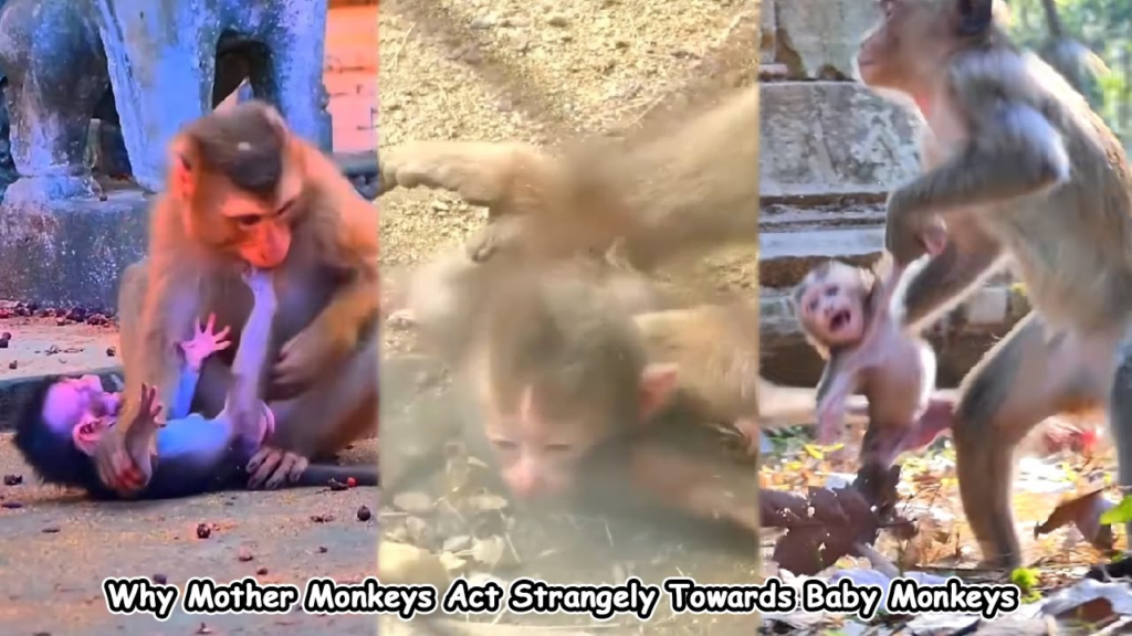 When a mother monkey treats her child so badly, what do you think is really happening behind this disturbing moment?