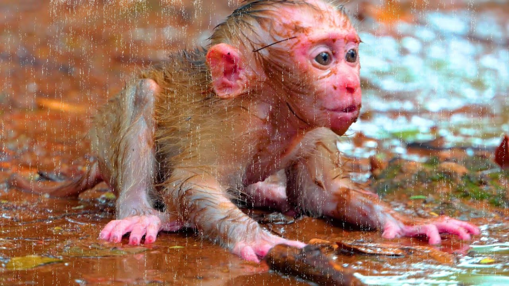 The jungle floor was unusually quiet. A tiny cry echoed through the trees. In a heartbreaking wildlife moment, tiny baby monkey Leo cries and shakes on the ground after getting dirty, looking frightened and helpless.