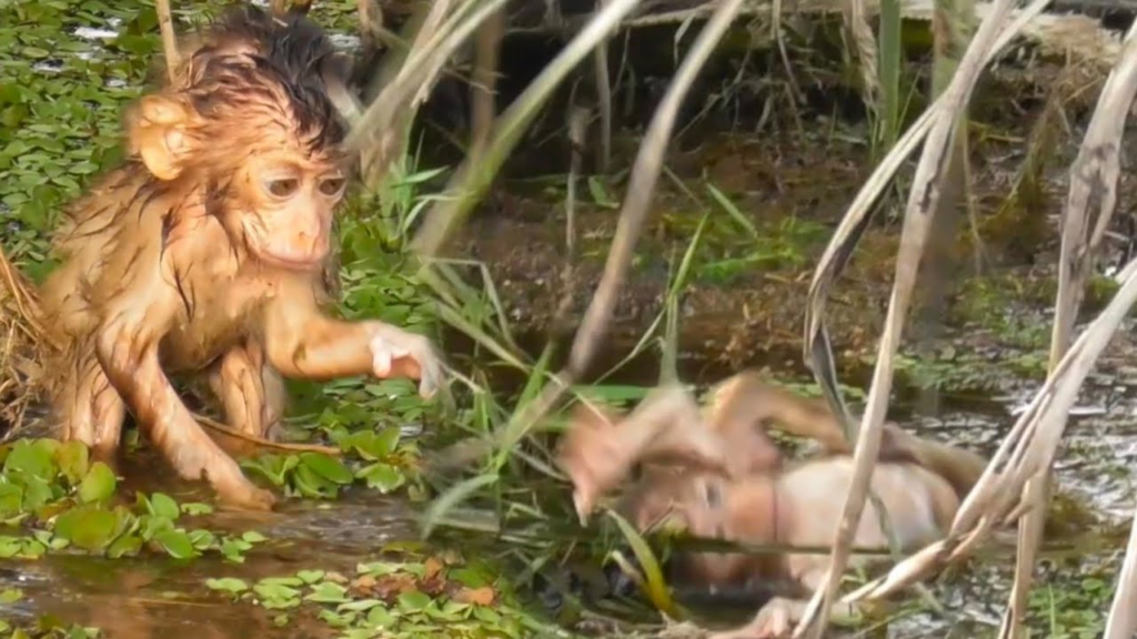A single slip changed everything. In one terrifying instant, the baby monkey fell into the water while searching for his friend, turning an innocent moment into a scene filled with fear and heartbreak.