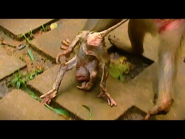 Baby Leo, a fragile young monkey, struggled in the muddy ground as his mother dragged him forward for refusing to follow.